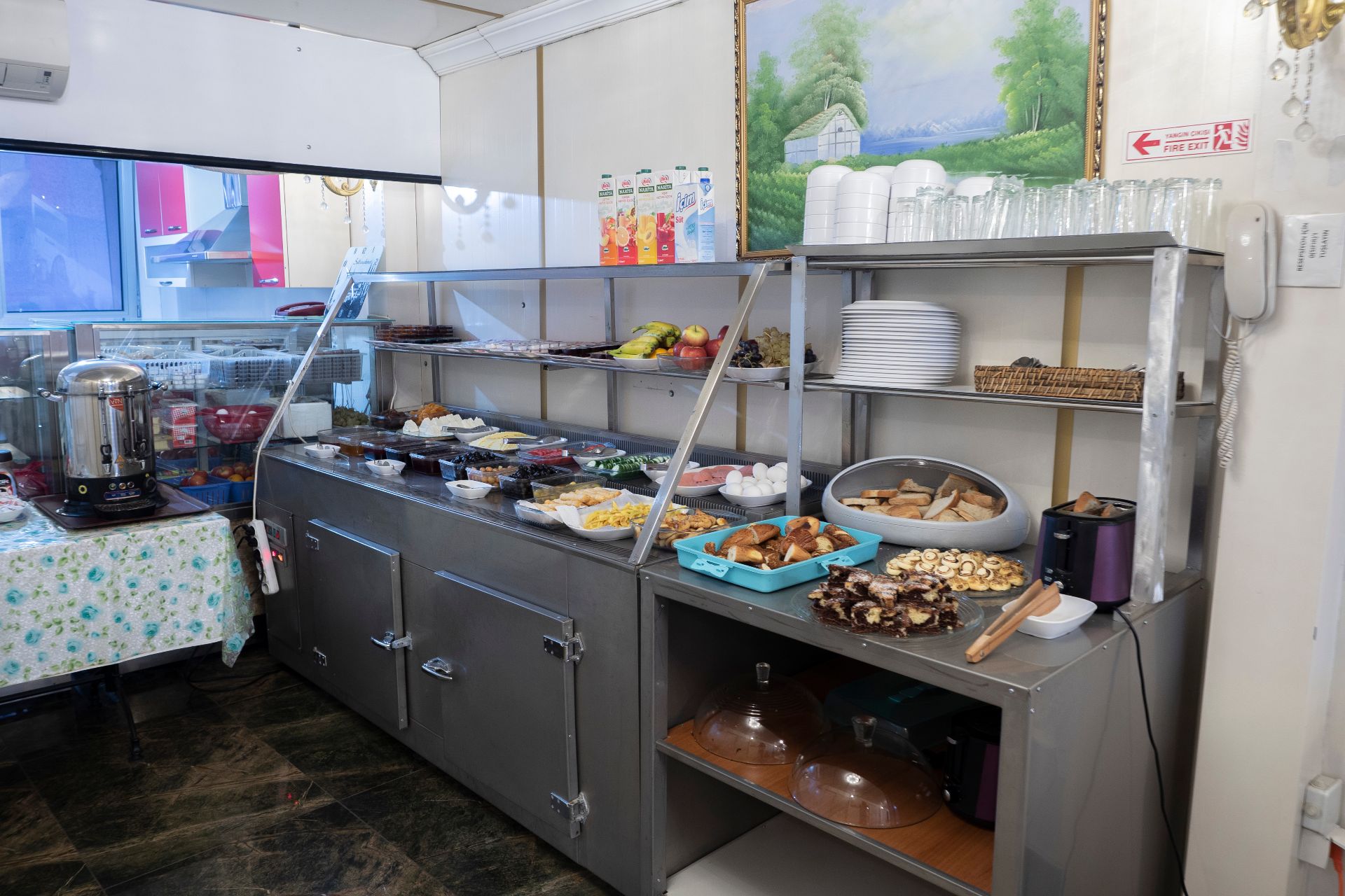 Otel bünyesindeki cafe ve restaurant hizmeti ile; gerek otel müşterilerine, gerekse günübirlik kullanıcılara kafeterya bünyesindeki mevcut sıcak ve soğuk yiyecek ve içecekler ile hizmet sunulmaktadır.Ayrıca; özel günleriniz, toplantılarınız ve organizasyonlarınız için de cafe ve restaurant bölümünde istek üzerine özel hizmet imkanları sunulmaktadır.